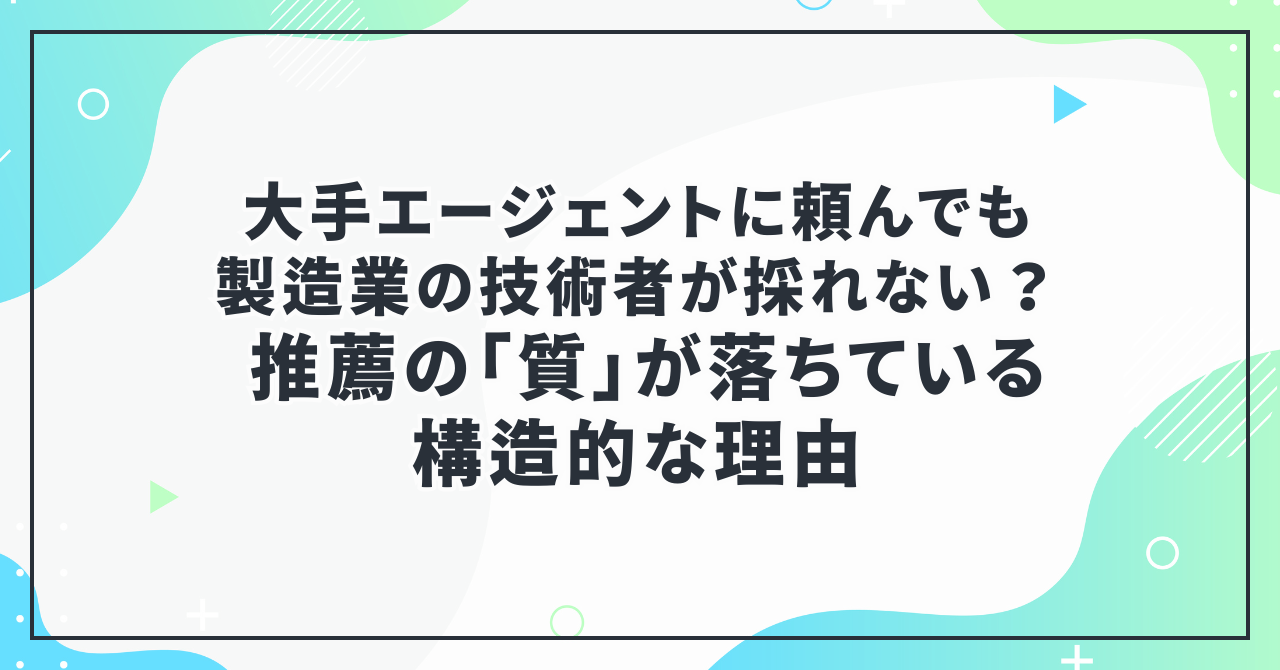 大手エージェントに頼んでも製造業の技術者が採れない? 推薦の「質」が落ちている構造的な理由